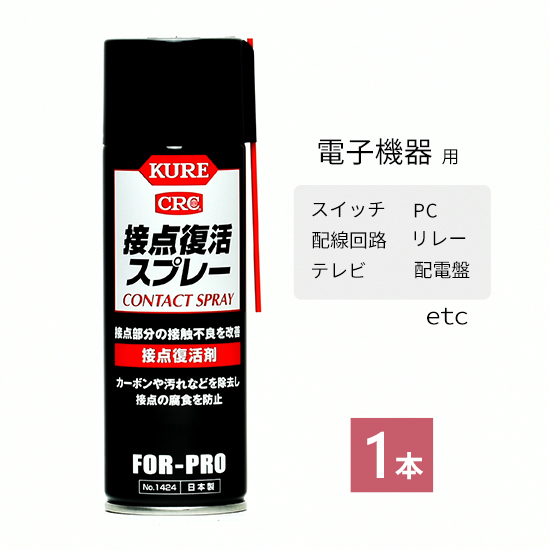 呉工業 (KURE) 接点復活スプレー No.1424 220ml 1本です。電子機器の接点不良をスプレーするだけで改善してくれる便利な商品です。