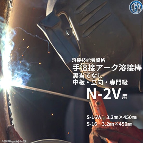 溶接技能者資格試験の手溶接(アーク溶接)のN-2V(専門級、立向、中板、裏当てなし)の試験に使用する日鉄溶接工業のS-16Wφ3.2mm×450mm 25本、S-16 φ3.2mm×450mm 24本の商品になります。