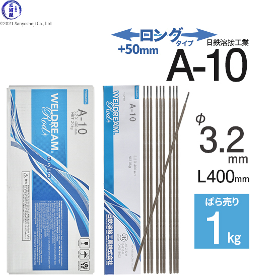 日鉄 溶接工業 アーク溶接棒 A-10 ( A10 ) 溶接 技能者試験向き ロングタイプ φ 3.2mm 400mm ばら売り 1kg