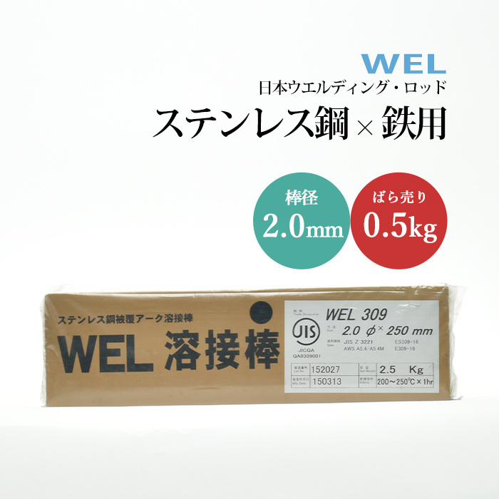 WEL ( 日本ウェルディングロッド ) アーク溶接棒 WEL 309 ステンレス鋼 用 φ 2.0mm 250mm ばら売り 0.5kg