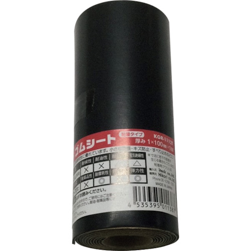 光 天然ゴムロール巻(粘着付)黒 1×100×1000mm KGR-1112T
