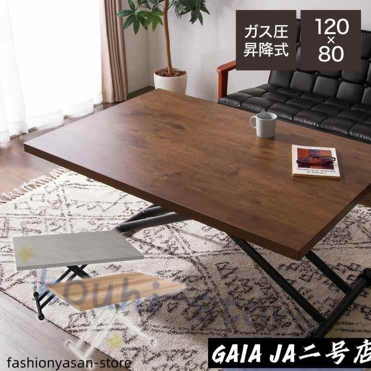 テーブル 昇降式 ガス圧昇降式テーブル 90/120×60cm/80cm 高さ調節 ブラウン ナチュラル 大理石調 おしゃれ シンプル 昇降テーブル ダイニングテーブル