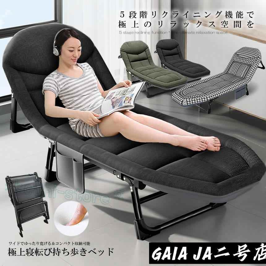 極上 寝転び 持ち歩き リクライニング チェア ベッド 5段階 ワイド ゆったり 睡眠 クッション 収納 折り畳み式