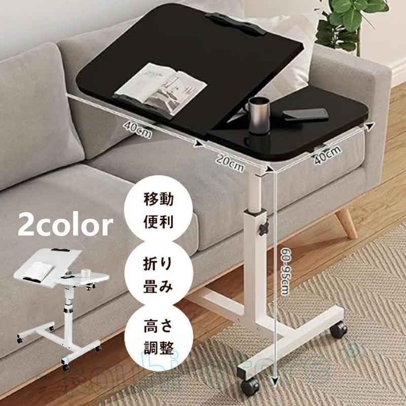 サイドテーブル 昇降式 パソコンデスク 高さ60-95cm キャスター付き 幅60 角度調整 無段階高さ調節 オフィス 移動式 勉強机 仕事 ベッドテーブル 介護用テーブル