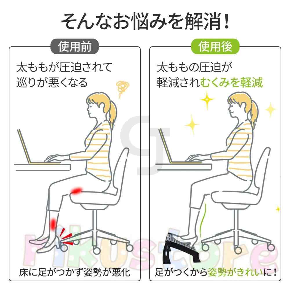 足を置くことで姿勢が良くなり、デスクワーク時の疲れを軽減してくれます。