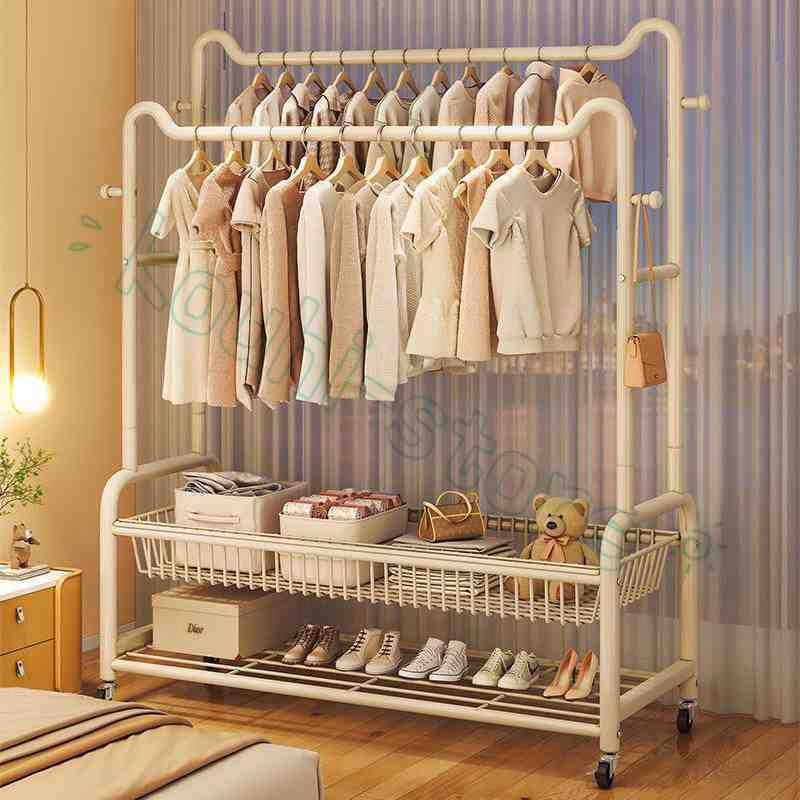 ハンガーラック おしゃれ 頑丈 キャスター付き パイプハンガー 衣類収納 洋服掛けラック 子供 洋服収納 洗濯物 室内干し 洗濯物落ち防止対策 梅雨対策