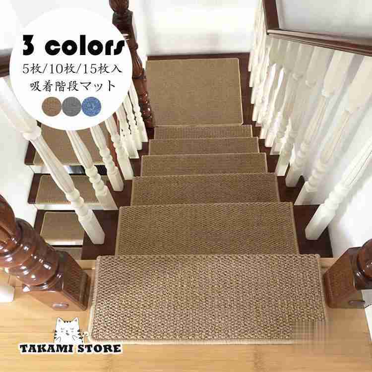階段マット 吸着 滑り止め 折り曲げ 防音 純色 長方形 おしゃれ ペット 犬 足冷え 介護 高齢者 転倒防止 手洗い可 キズ防止 5/10/15枚組 おくだけ吸着 ずれない