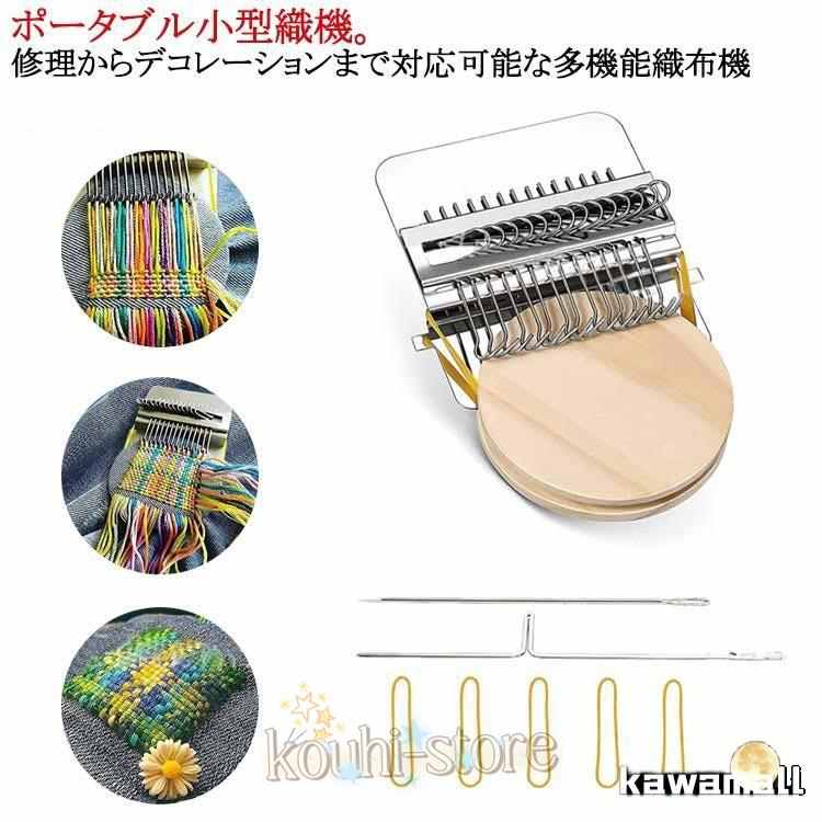 ポータブル小型織機 小型編み機 木製 手持ち式編み機 デニム穴修理ツール 織りツール かがり織機 ミニ織り機 ステンレス製 ダーニング織機 ビーズ織機