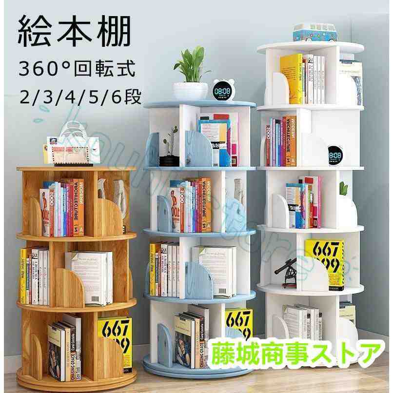 絵本棚 360°回転する本棚 本棚 簡単な収納 絵本ラック 本箱 大容量 コミックラック 回転 シンプル スリム 安い コミック 回転式本棚 2/3/4/5/6段 おしゃれ