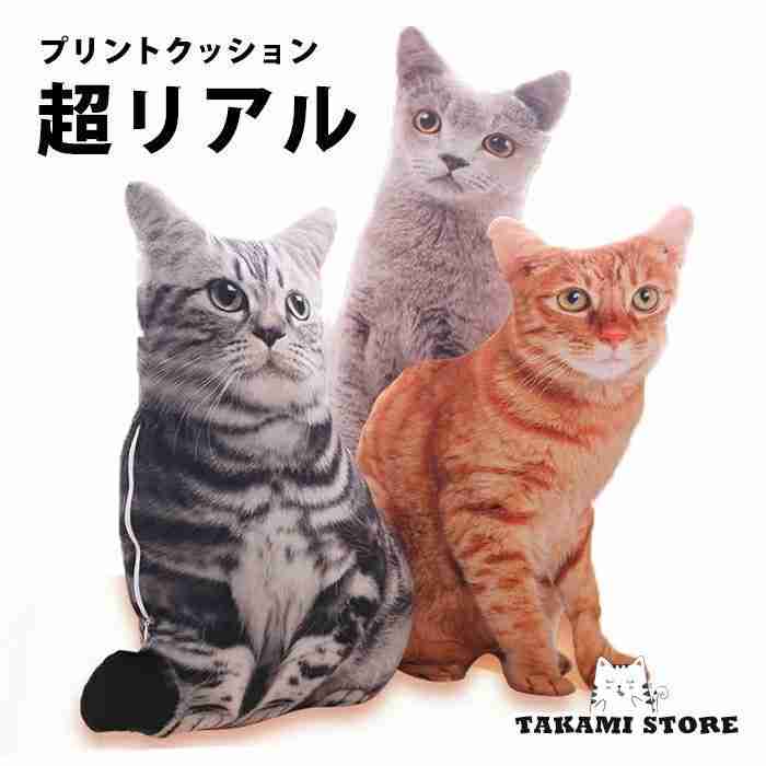 まるで本物!リアルなネコがプリントされたもちもちクッション