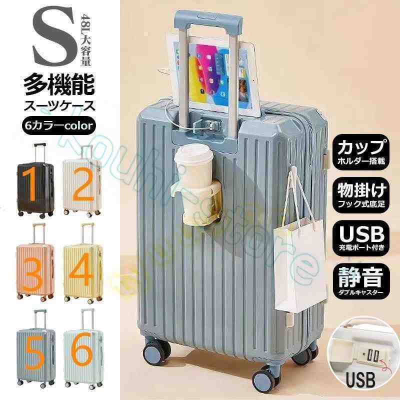 スーツケース 機内持ち込み 軽量 小型 キャリーケース Sサイズ カップホルダー 大容量 ファスナータイプ 静音 おしゃれ かわいい 2泊3日 短途旅行 48L