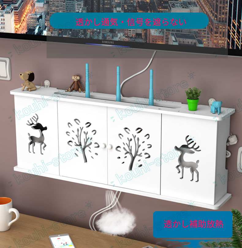 無線ルーター収納ボックス Wi-Fiルーターボックス 壁掛け セットトップボックスラック 白 ルーター収納ケース 壁付け ルーターラック