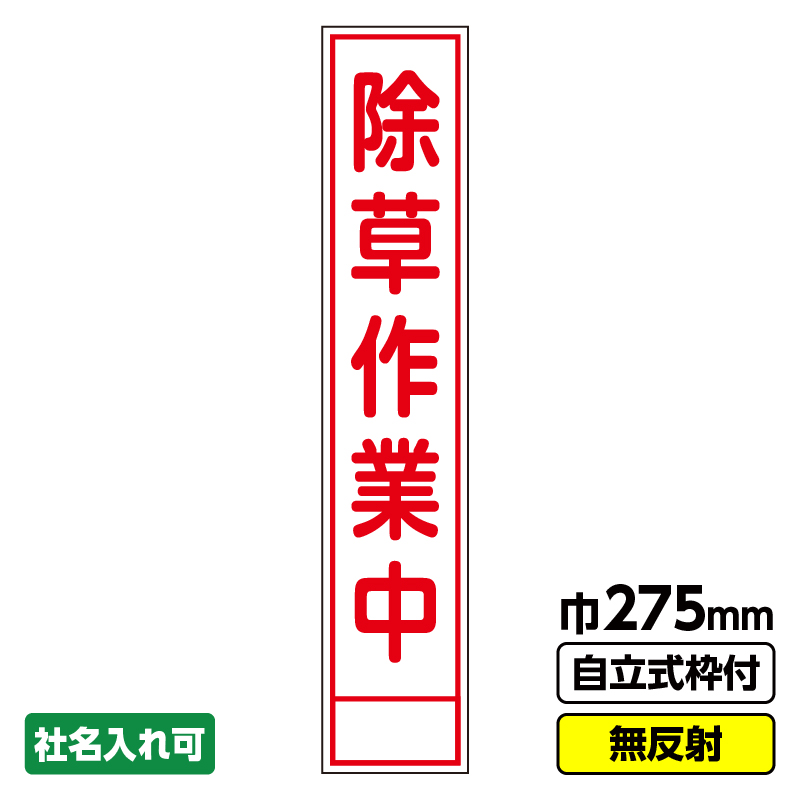 工事看板 スリム「除草作業中」 275X1400 無反射 自立式19角枠付