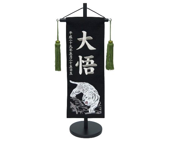 ちりめん刺繍名前旗(特中)白虎(黒) ふりがな対応 室内飾り 刺繍 名前旗 男の子 端午の節句 こどもの日 五月人形 初節句 命名旗 送料無料 SO-106
