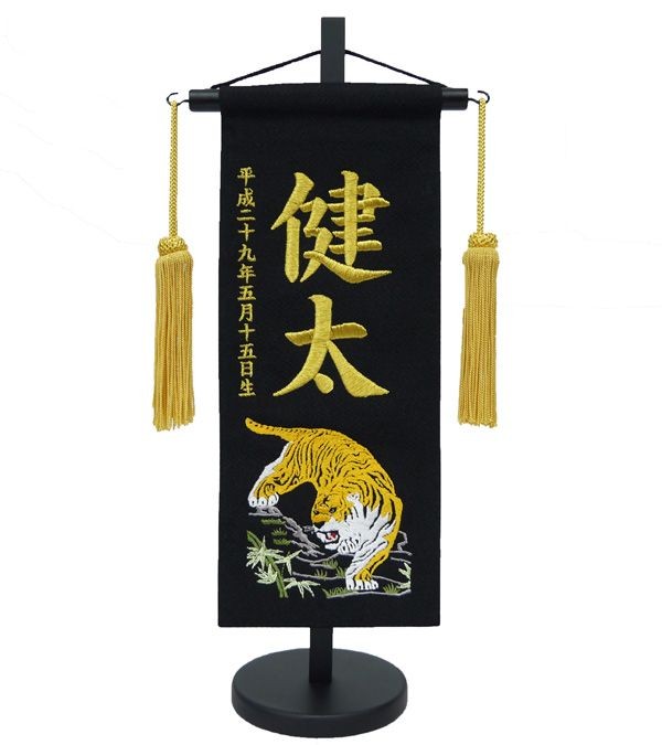 ちりめん刺繍名前旗(小)虎(黒) ふりがな対応 室内飾り 刺繍 名前旗 五月人形 男の子 端午の節句 こどもの日 初節句 タペストリー 送料無料 SO-109