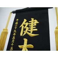 お子様のお名前や生年月日を、金の糸で刺繍した男の子向けのお名前旗となります。