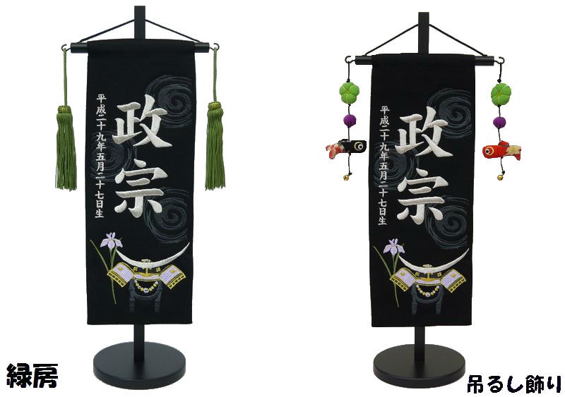 ちりめん刺繍名前旗(特中)伊達兜(黒) ふりがな対応 室内飾り 刺繍 名前旗 男の子 五月人形 伊達政宗 端午の節句 こどもの日 初節句 送料無料 SO-114