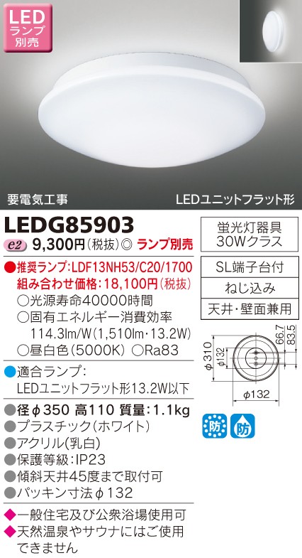 東芝 LEDアウトドアシーリングライト (ランプ別売) LEDG85903