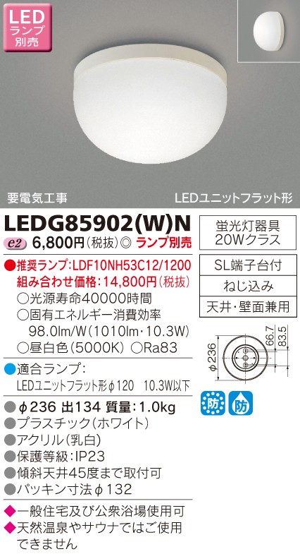 東芝 LEDアウトドアシーリングライト (ランプ別売) LEDG85902(W)N