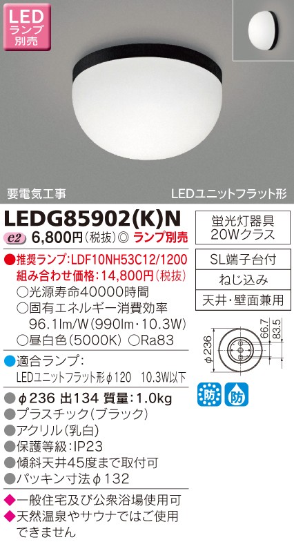 東芝 LEDアウトドアシーリングライト (ランプ別売) LEDG85902(K)N