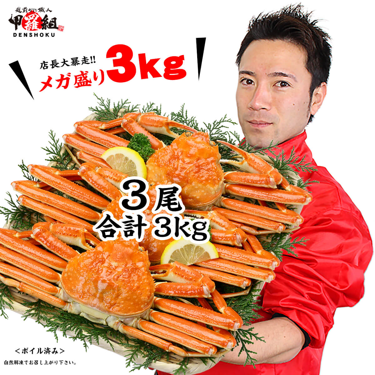 商品の内容:ボイルずわいがに姿3kg(3尾)<原材料>ズワイガニ(ロシア産)、食塩