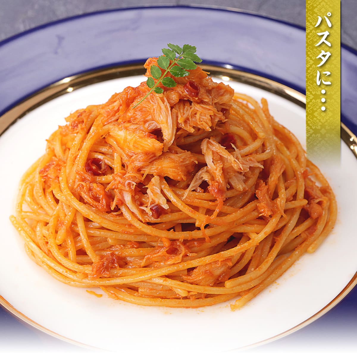 かに鍋や雑炊はもちろん、チャーハン・パスタ・サラダなどにも混ぜやすく、必要な分だけ取り出せるのも便利です。