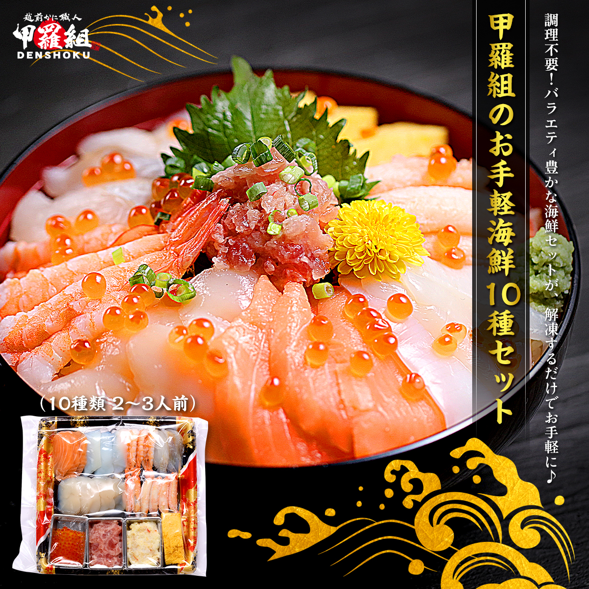 ほたて貝(北海道産)、まるずわいがに、味付玉子(鶏卵、砂糖、かつおだし、醤油、みりん、食塩、醸造酢、植物油/加工澱粉)、海鮮サラダ(アカイカ、半固体状ドレッシング、カナダホッキガイ、ホタテ貝ヒモ、数の子、アミノ酸液調味料、砂糖、還元水飴、発酵調味料、かつお節エキス、醤油/増粘剤(加工澱粉、増粘多糖類)、調味料(アミノ酸等)、香辛料抽出物、pH調整剤、クチナシ色素)、魚介類加工品(鮪、ショートニング、鮪油、食塩/pH調整剤、調味料(有機酸)、トレハロース、膨張剤、酸化防止剤(V.C))、サーモントラウト、あかいか、ひらめ、寿司エビ(バナメイエビ、食塩)、醤油漬いくら(鱒卵、醤油、オリゴ糖、還元水飴、食塩、鰹節エキス、米発酵調味料、みりん/調味料(アミノ酸等)、pH調整剤)、(一部にえび・かに・小麦・卵・乳成分・さけ・いか・大豆・いくら・りんご・ゼラチン・さばを含む)
