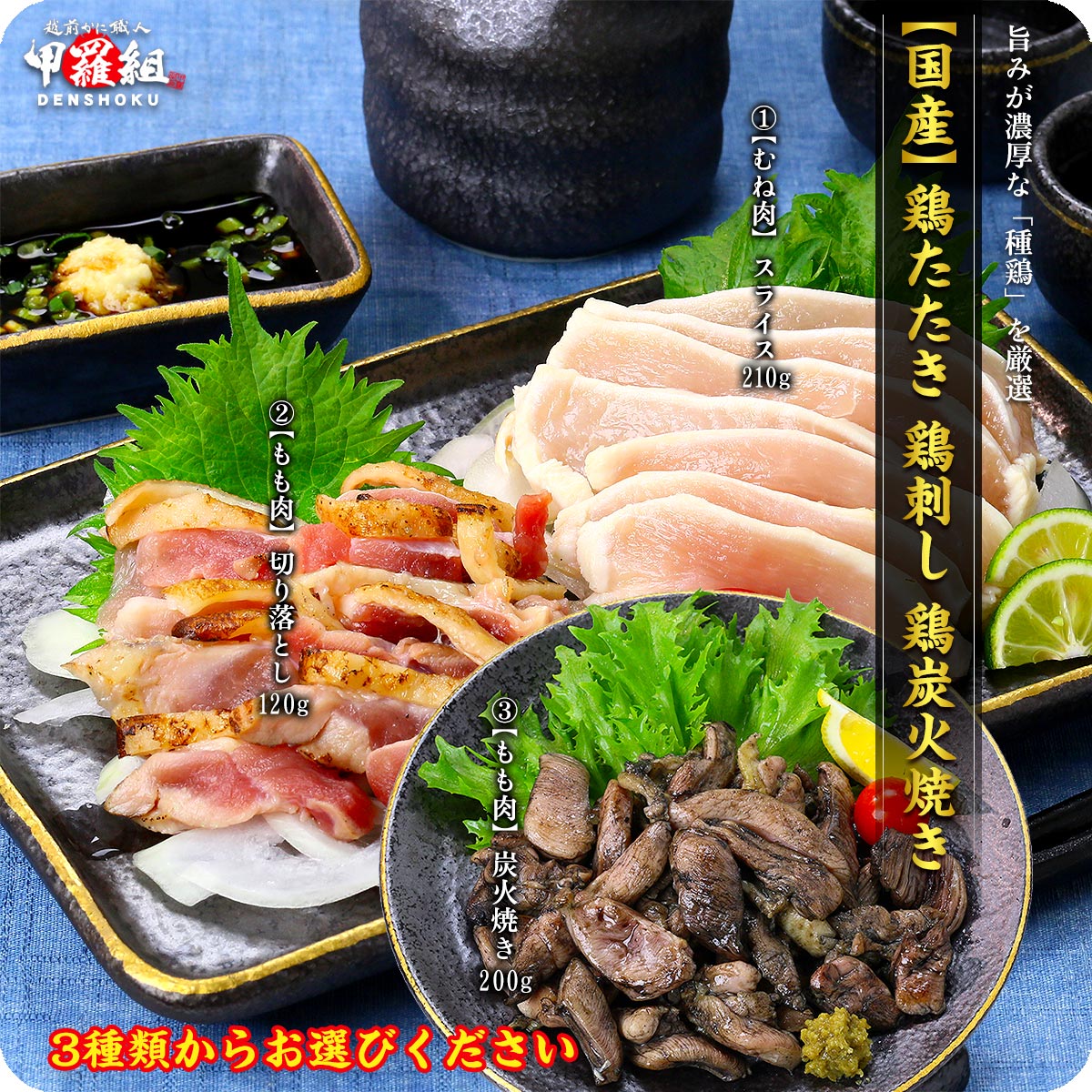 鶏たたき 鶏刺し 3種類から選べる!⇒【1】むね肉スライス210g 【2】もも肉切り落とし120g 【3】もも炭火焼き200g ギフト FF 爆買