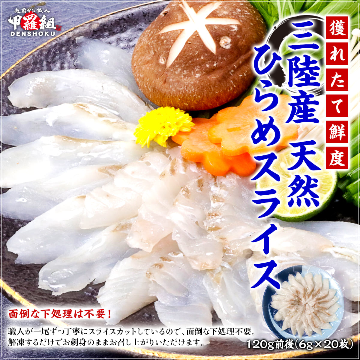 三陸産 天然ひらめスライス 6g×20枚 お刺身・しゃぶしゃぶ用 ひらめ 平目 国産 寿司 すし 刺身 さしみ 魚 カルパッチョ 海鮮丼 爆買