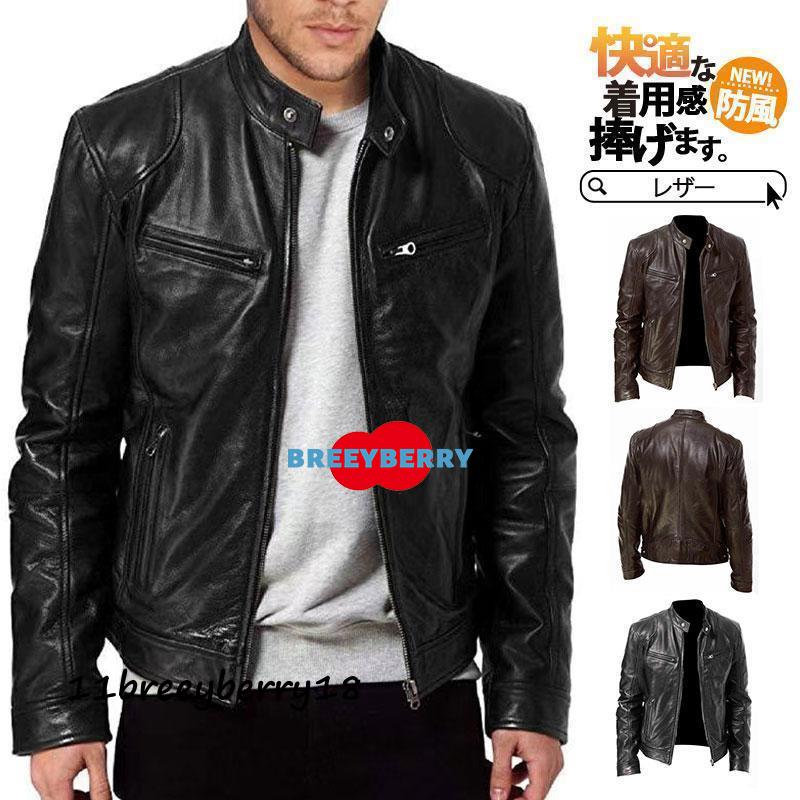 ライダースジャケット メンズ レザージャケット 革ジャン ライダース ジャケット シンプル 軽い ブルゾン アウターバイク フェイクレザー 秋冬 防風 ミリタリー