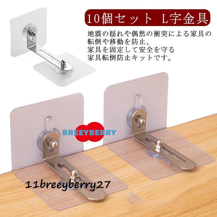 家具転倒防止グッズ 耐震ストッパー 10個セット 粘着テープ L字金具 貼り付け簡単 地震対策 家具 棚 転倒防止