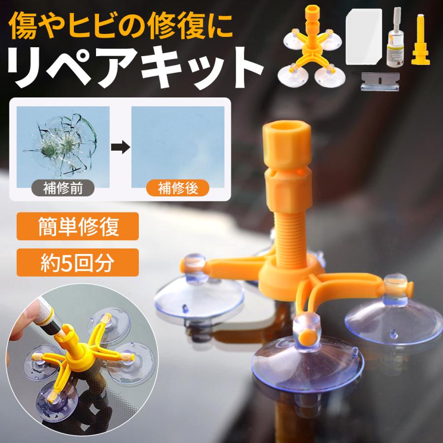 フロントガラス 修理 リペアキット 飛び石 車 修理 DIY フロントガラス補修キット キズ消し セルフ フロントガラス 自分で 家で 自宅 飛び石 傷消し 窓 リペア