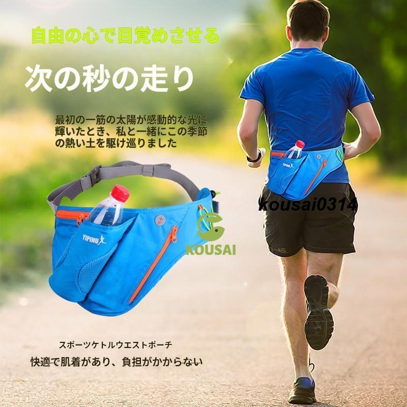 ランニングバッグ スポーツ用 ウエストポーチ ペットボトルホルダー付き 防水 ウォーキング ジョギングポーチ ウェストバッグ スマホ入れ 軽量 軽い