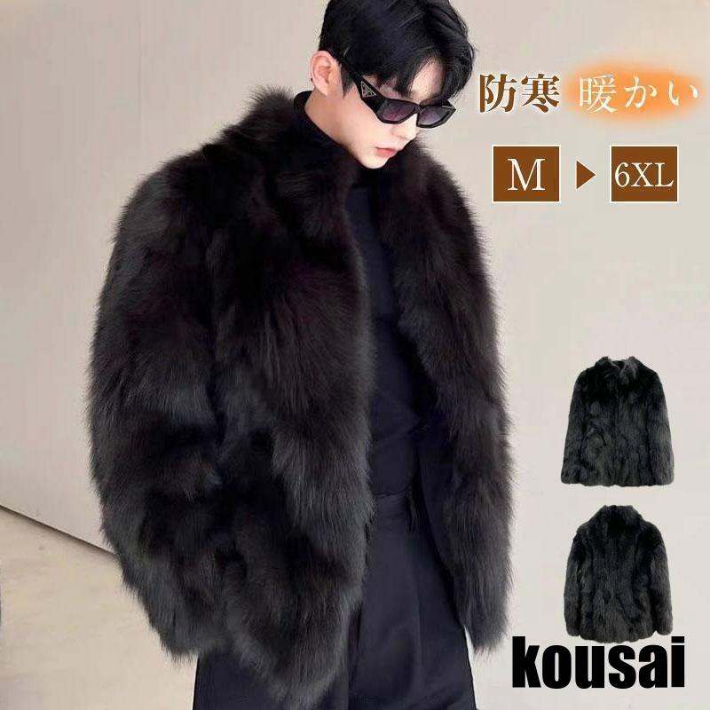 ファーコート メンズ アウター 長袖 ファージャケット 大人 ファー コート 毛皮コート フォックス フェイクファー きれいめ コート ジャケット