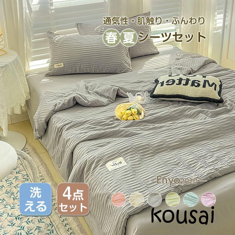 夏布団セット 春夏用 無地 涼しい おしゃれ 4点セット 柔らかい ベッドカバー おすすめ 寝具 プレゼント ギフト セミダブル 通気性 肌触り