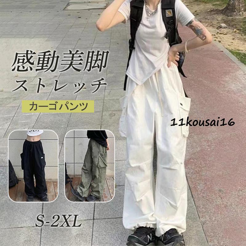 カーゴパンツ レディース ミリタリーパンツ ワイドパンツ ウエストゴム テーパードパンツ ロング丈 ワークパンツ ヒップホップ ダンス衣装 ゆったり