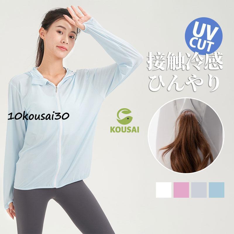 ラッシュガード レディース 長袖 アイスシルク パーカー UPF50+ フード付き 接触冷感 日焼け止め 紫外線対策 サマージャケット 体型カバー ジップアップ 薄手