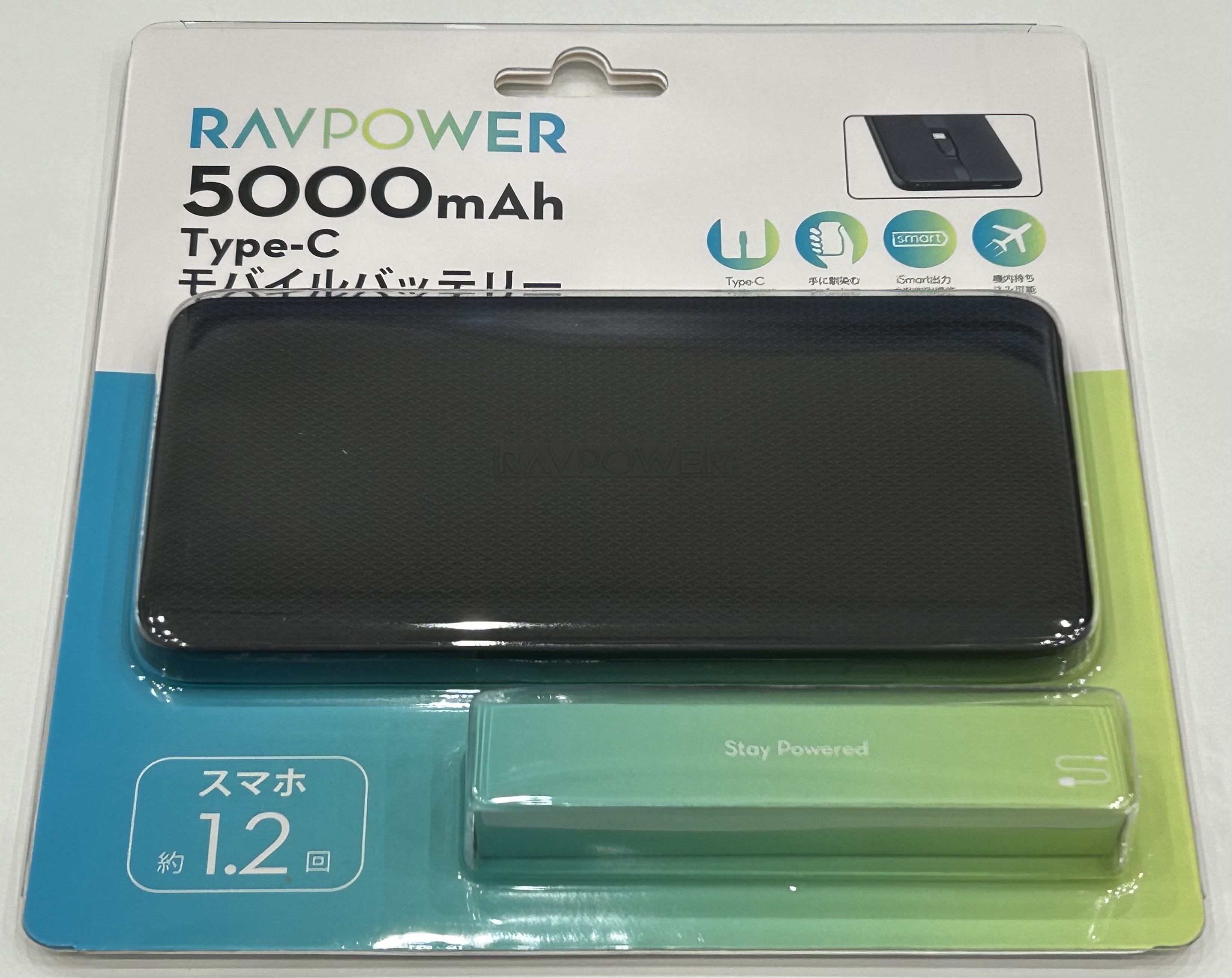 RAVPower ラブパワー 5000mAh Type Cケーブル内蔵モバイルバッテリー ブラック RP-PB160 PSE認証済