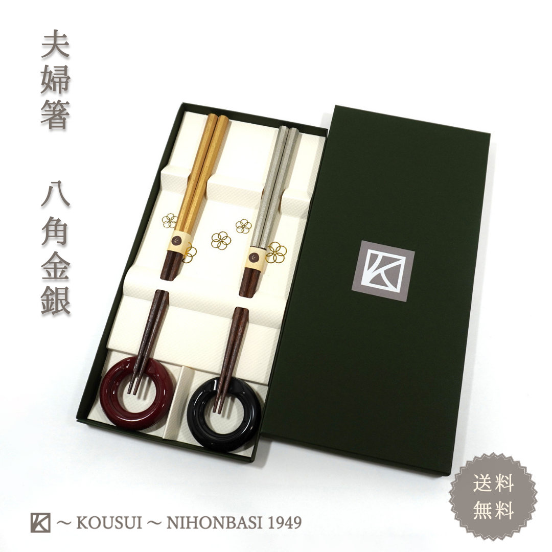 夫婦箸 八角 金銀 輪型 越前塗 日本製 高翆オリジナル 和モダン 高級 箸 ギフト 結婚祝い 敬老の日 送料無料