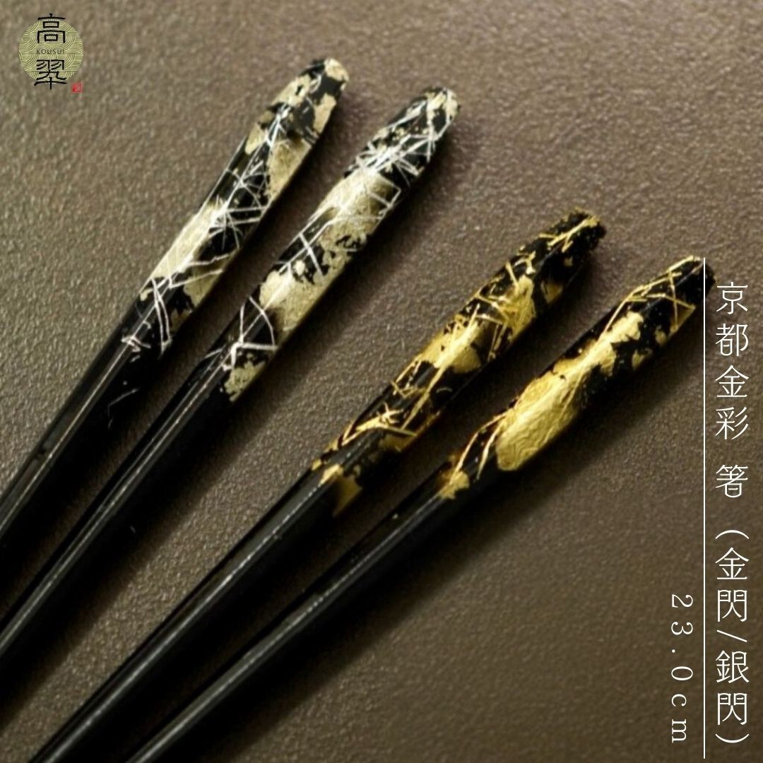 京都金彩 箸 23.0cm(金閃/銀閃) 日本製 木製 天然木 漆塗装 ウレタン塗装 伝統 箔 若狭 ギフト プレゼント 結婚 新築 父 母 長寿 敬老 国産 漆器 海外 japan