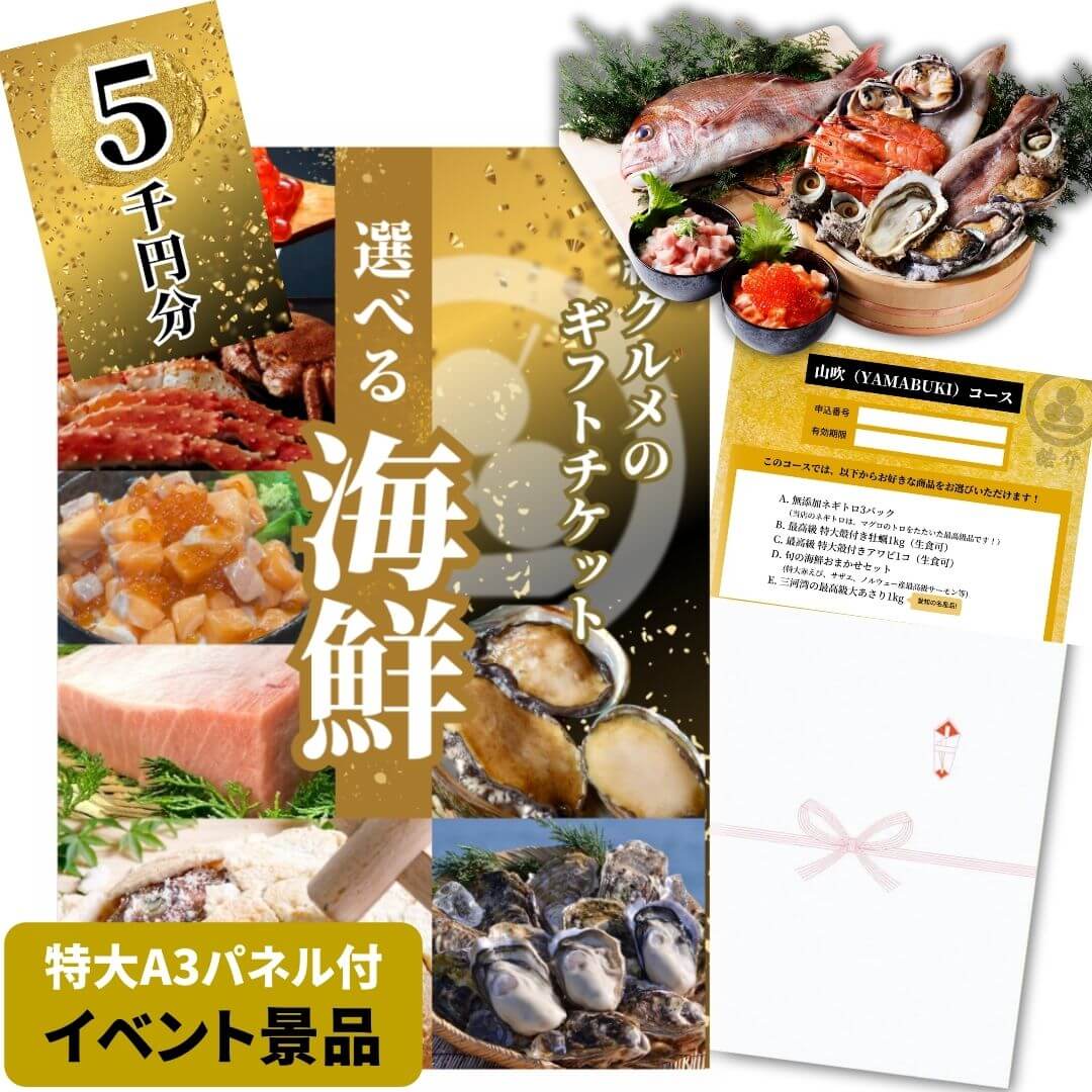 【イベント景品】豪華海鮮5000円コース グルメカタログギフト(A3パネル付き)忘年会 新年会 送迎会 ゴルフコンペ 結婚式 二次会 ビンゴ大会 賞品 送料無料