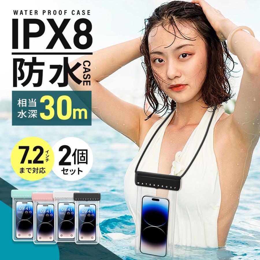 【2個セット】防水ケース スマホ防水ケース タッチ可 Face ID 認証対応 完全防水 防水IPX8 防水携帯ケース iPhone Android 全機種対応 最大7.2インチまで対応