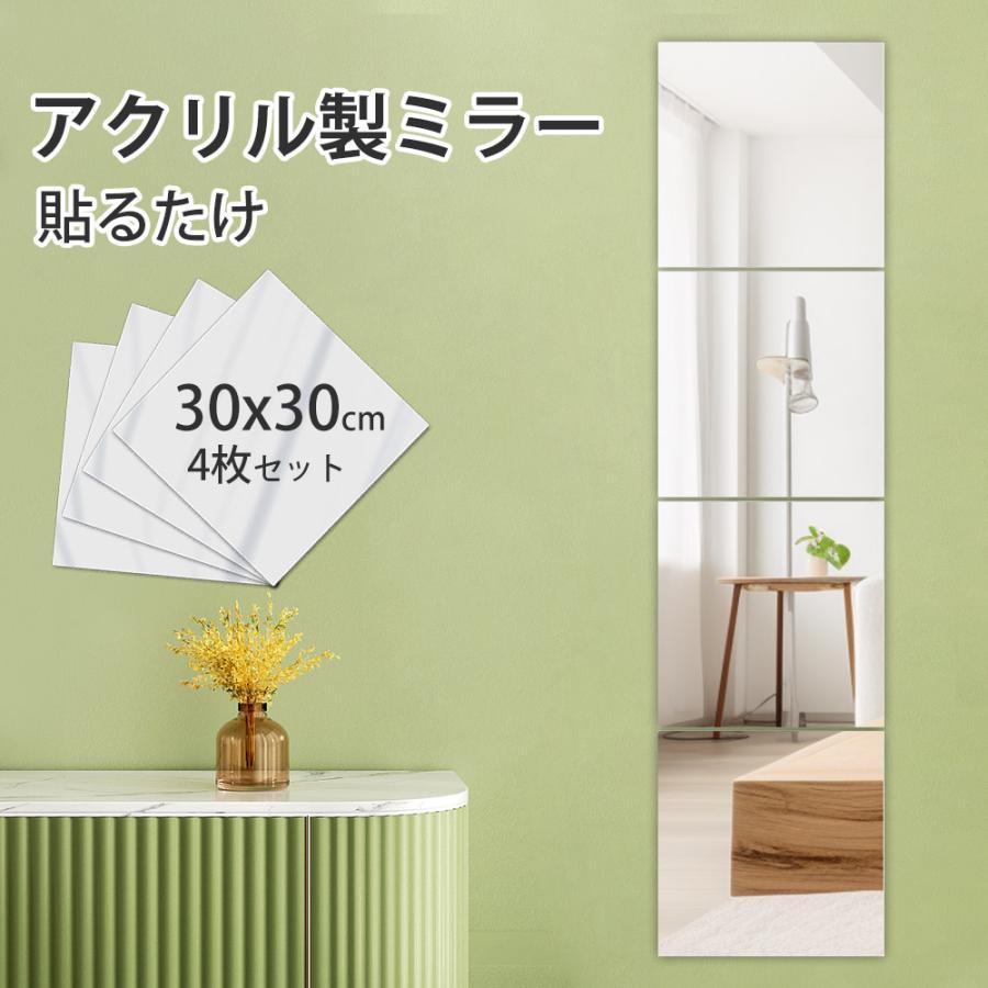 【4枚セット】貼る鏡 全身 アクリル製 ミラー 貼るだけ簡単 軽量 壁に貼る鏡 割れにくい 非ガラス製 浴室 シート おしゃれ 粘着タイプ 工具不要 地震対策