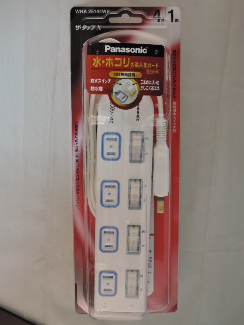 パナソニック 製品番 WHA25144WP4個口1m タップ接続機器を個別にON OFF できます。スイッチは防水仕様安全設計扉 パッキン付コンセント スナップキャップ付合計 1500ワット まで