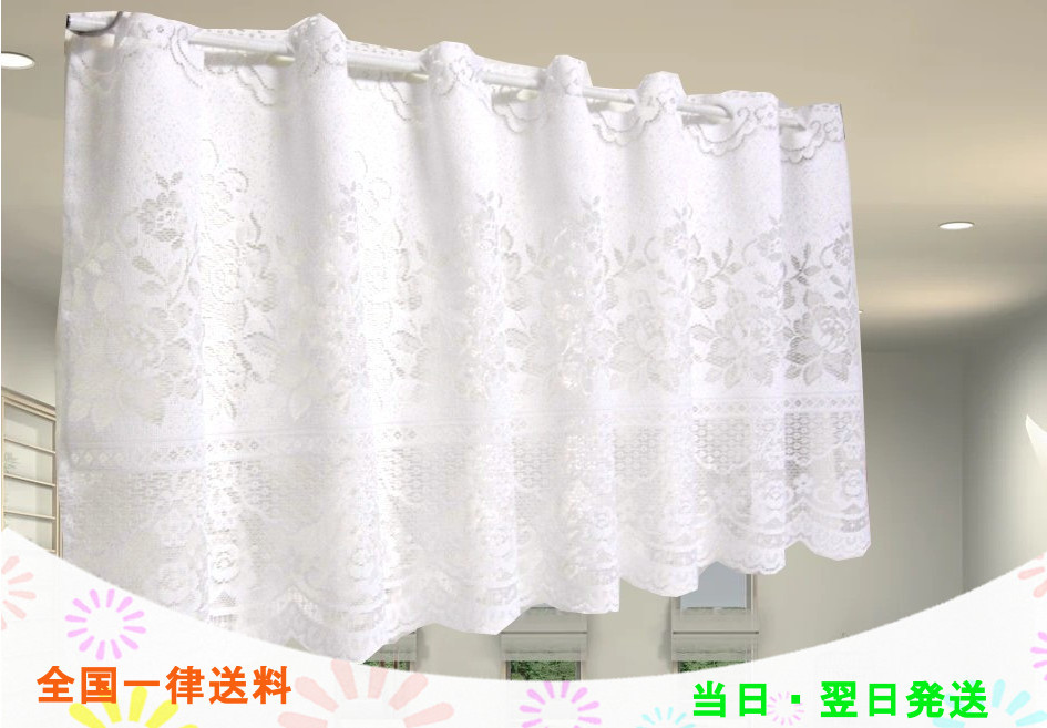 レースカフェカーテン のれん 台所、玄関、リビング、寝室にピッタリです。 突っ張り棒に通して取付できます。 | サイズ 巾約118cm 丈約50cm 素材ポリエステル100% 日本製 全国一律送料無料 |