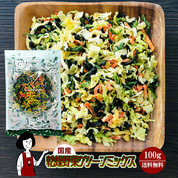 乾燥野菜グリーンミックス 100g 国産 チャック付 キャベツ ほうれん草 にんじん ドライ野菜 干し野菜 保存食 非常食 防災 ポイント利用 お試し サンプル