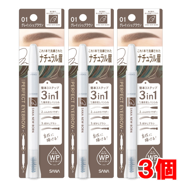 【3個】【メール便発送・送料無料】SANA New Born(ニューボーン)パーフェクトアイブロウ 01 (グレイッシュブラウン)×3個