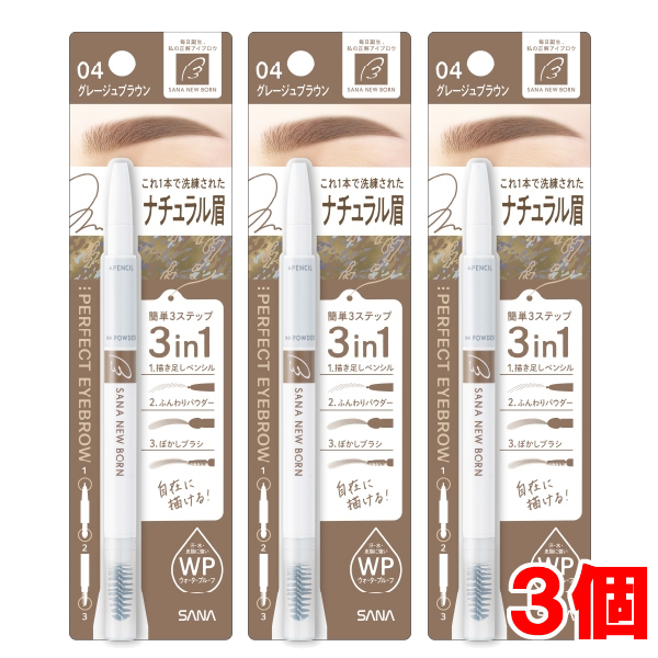 【3個】【メール便発送・送料無料】SANA New Born(ニューボーン)パーフェクトアイブロウ 04 (グレージュブラウン)×3個
