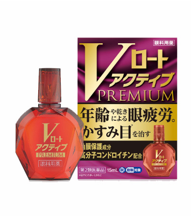 「Vロートアクティブプレミアム」は、眼疲労時に起こる視覚機能の低下に着目した“視覚機能の回復サポート処方”を採用し、年齢や乾きによる眼疲労。かすみ目*1症状を治す目薬です。