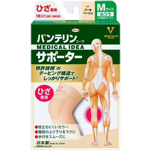 【メール便発送・送料無料】バンテリンコーワ サポーターひざ用 ふつうM(パールベージュ・左右共用・1枚入り)